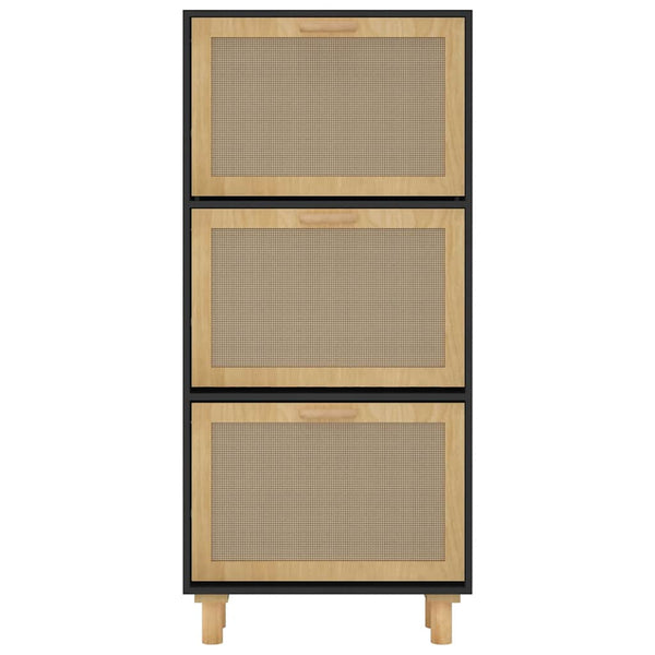 Musta kenkäkaappi 52x25x115cm puinen/luonnonrottinki
