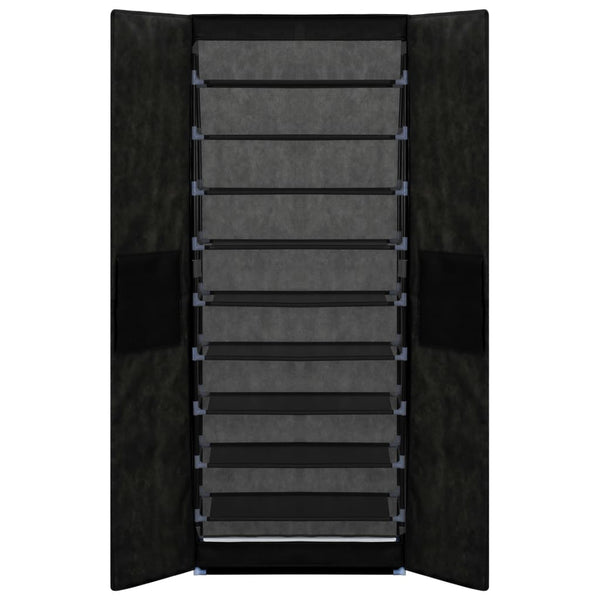 10-kerroksinen kenkäkaappimme ratkaisee kenkien säilytysongelmasi. Kenkäkaapin 10-kerroksisen muotoilun ansiosta siihen mahtuu helposti 30 kenkäparia, joten voit pitää kenkäsi siististi järjestyksessä yhdessä paikassa. Kuitukangassuoja pitää kenkäsi piilossa katseilta ja samalla myös suojassa pölyltä. Koska tämä kaappi on niin kevyt, on sitä helppo siirtää.