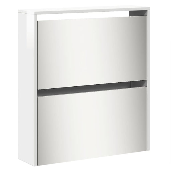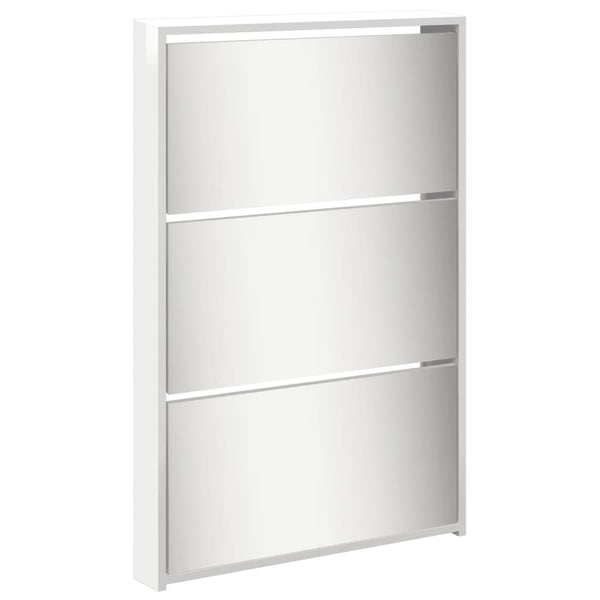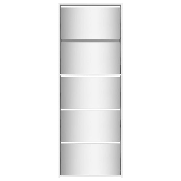 Korkeakiilto valk. kenkäkaappi peilillä 5 tasoa 63x17x169,5cm