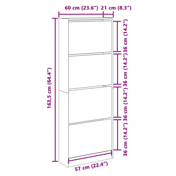 - Runsaasti säilytystilaa: Kenkätelineessä on 4 kääntölaatikkoa, jotka tarjoavat runsaasti tilaa kenkien pitämiseen kättesi ulottuvilla ja hyvässä järjestyksessä.