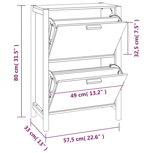Valkoinen kenkäkaappi 57,5x33x80cm puinen