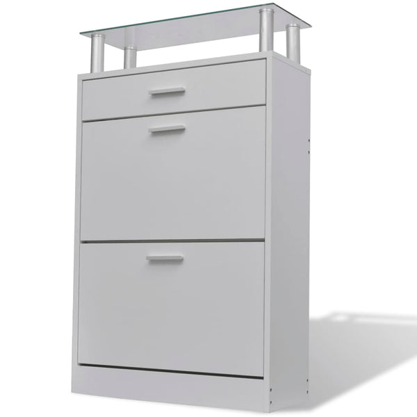 Tässä puisessa kenkäkaapissa on vetolaatikko, lasihylly ja 2 säilytysosastoa sekä yksinkertainen, mutta tyylikäs muotoilu. Sinun ei tarvitse enää ärsyyntyä kenkien viedessä tilaa lattialla.