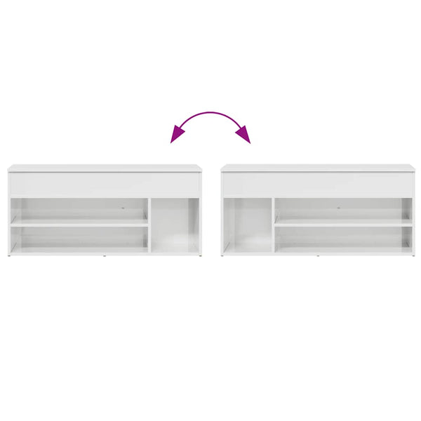 Valkoinen kenkäpenkki 102x30,5x45cm korkeakiiltävä