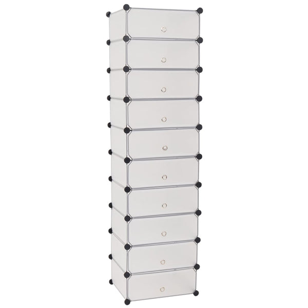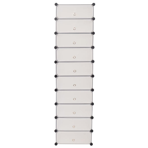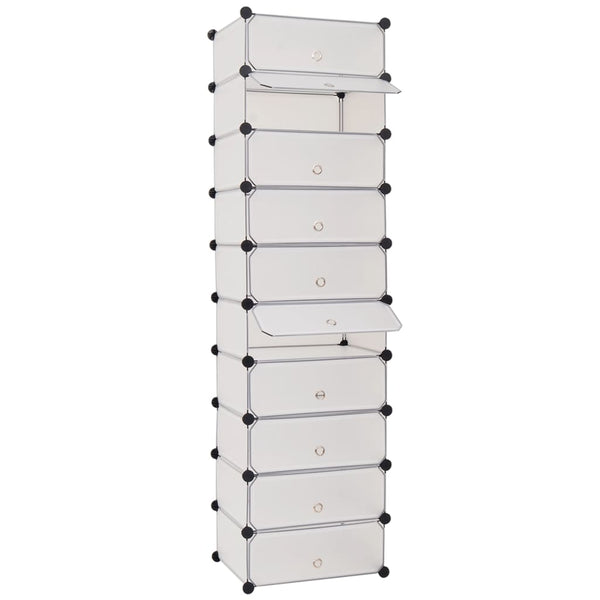 Valkoinen kenkäteline 10 toisiinsa kiinnitettävällä lokerolla