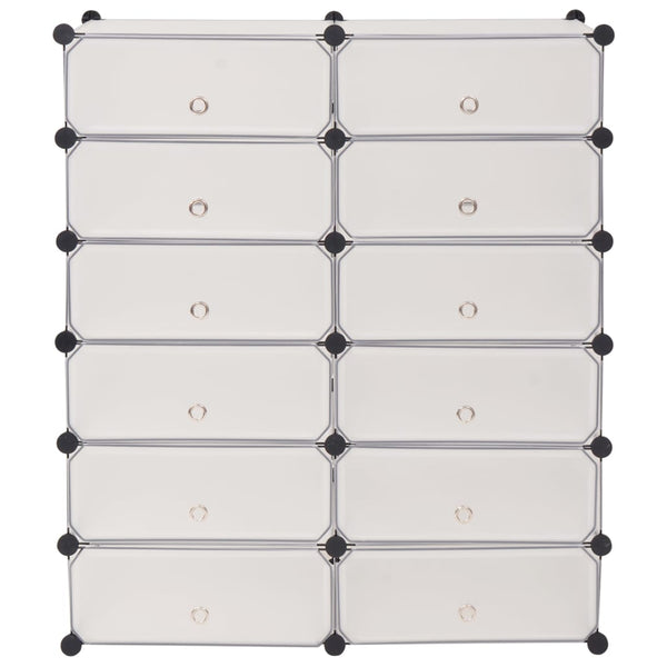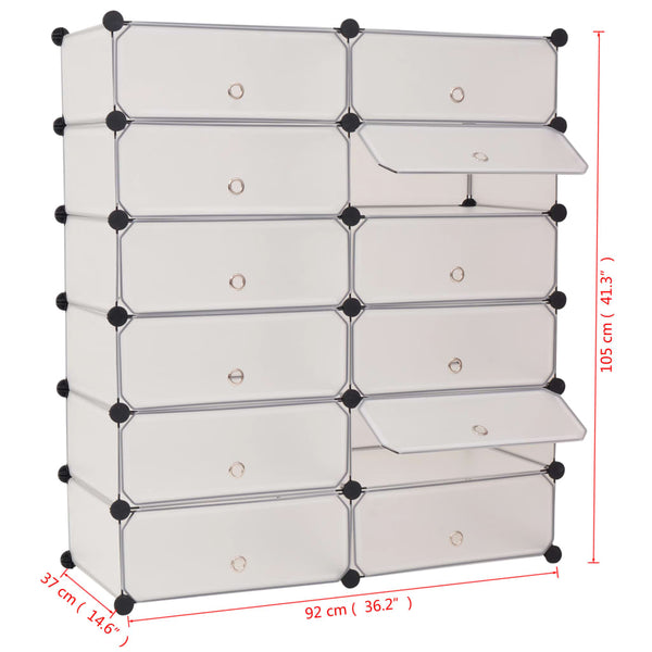 Valkoinen kenkäteline 12 toisiinsa kiinnitettävällä lokerolla