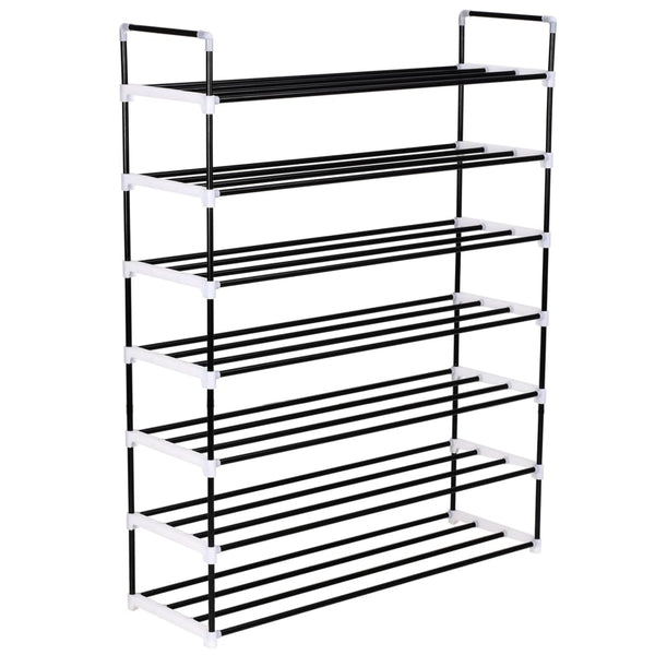 Musta kenkäteline 7 hyllyllä metalli ja muovi
