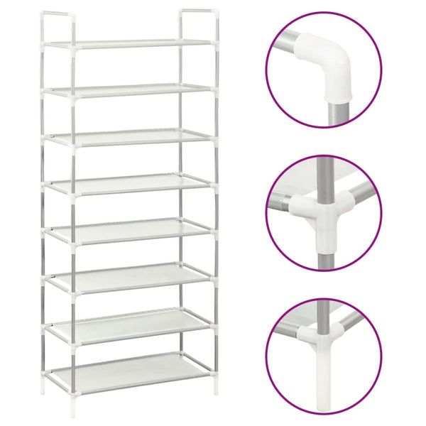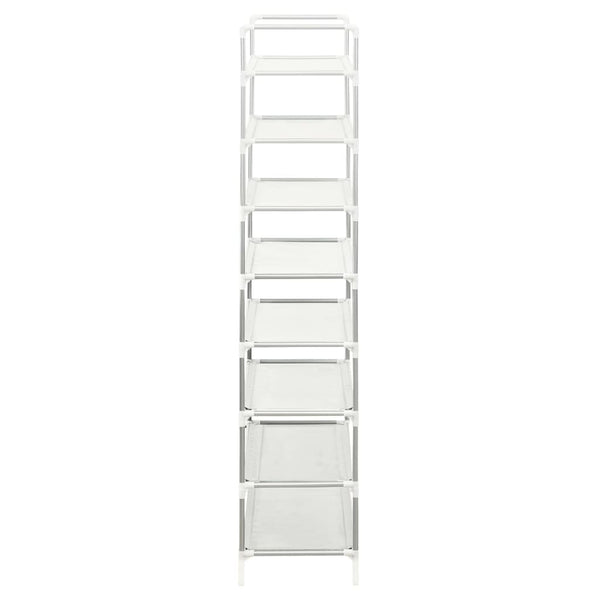 Kenkien järjestelijässä on putkimainen, kevyt mutta kestävä metallirunko, jonka ansiosta kenkäteline on melko vakaa ja sitä on helppo siirtää. Sen kahdeksan tilavaa hyllyä on valmistettu kuitukankaasta ja ne tarjoavat runsaasti tilaa kenkiesi järjestämiseen ja säilyttämiseen.