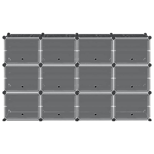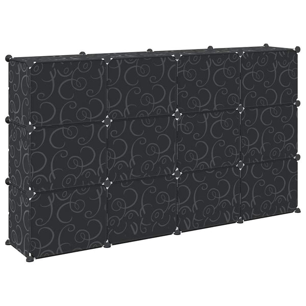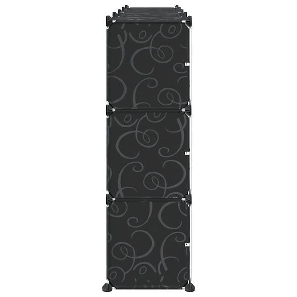 Musta säilytyslokero 12 kuutiolla ja ovilla pp