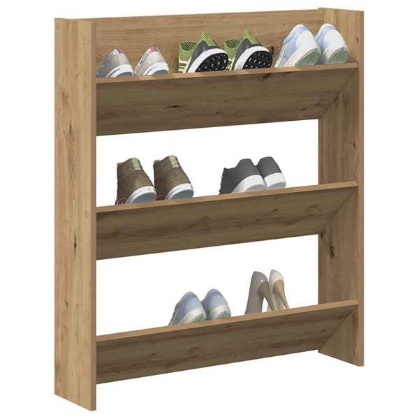 - Runsaasti säilytystilaa: Kenkäteline on varustettu kolmella kaltevalla hyllyllä, jotka tarjoavat runsaasti säilytystilaa kenkien, saappaiden ja varvastossujen siistissä järjestyksessä säilyttämiseen.