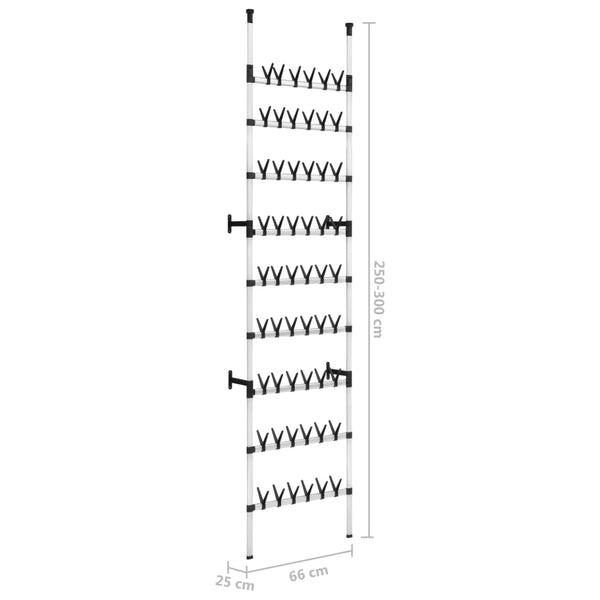 Vahva ja vankka teleskooppinen kenkäteline on valmistettu alumiinista. Teleskooppijärjestelmän ja säädettävän korkeutensa ansiosta tämä säilytysteline mukautuu monenlaisiin tiloihin. Se tarjoaa ainutlaatuisen ja nerokkaan tavan järjestää kengät ja säästää tilaa.