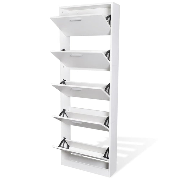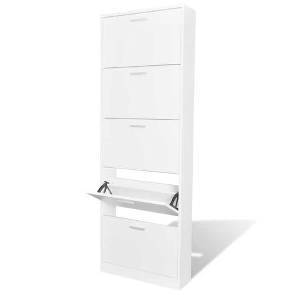 Tässä puisessa kenkäkaapissa on 5 säilytysosastoa ja yksinkertainen, mutta tyylikäs suunnittelu. Et enää ärsyynny kenkien viedessä tilaa lattialla.