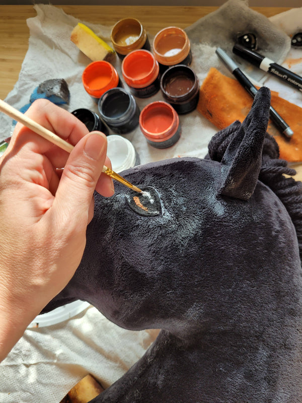 Super Hobby Horse on käsin maalattu ja varjostettu, huolellisesti ja tarkasti, jotta se näyttää oikealta hevoselta. Käytämme vain hyväksyttyjä kangasmaaleja, jotka ovat ympäristöystävällisiä.