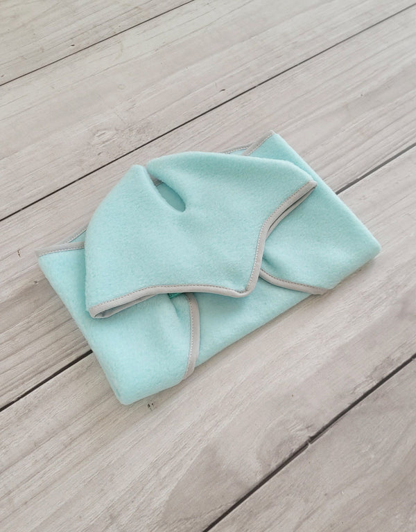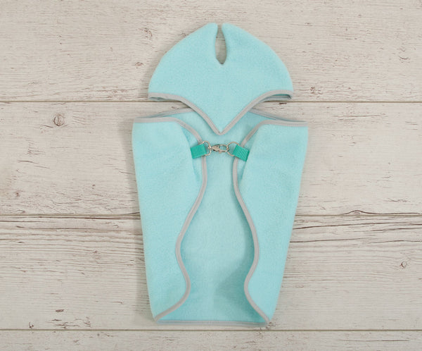 Loimi ja korvahuppu on valmistettu pehmeästä fleecestä, jonka reunat on huoliteltu sävyyn sopivalla kanttauksella. Tämä varmistaa paitsi tyylikkään ulkonäön myös kestävyyden. Loimi kiinnitetään helposti hopeanvärisellä karabiinihakasella ja puolirenkaalla, mikä tekee sen käytöstä vaivatonta.