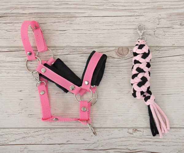 Setti Hobby Horse: A3-huopapanta mustalla turkiksella + Pantaan kiinnitettävä köysi - musta-pinkki