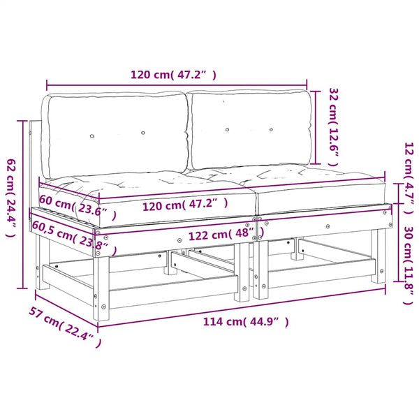 Nämä puusta valmistetut keskisohvat erottuvat edukseen sälemuotoilullaan ja pehmeillä tyynyillään. Ne ovat erinomainen lisä puutarhaan, terassille tai patiolle ajanviettoon perheen tai ystävien kesken.