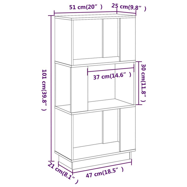 Harmaa kirjahylly/tilanjakaja 51x25x101cm mänty