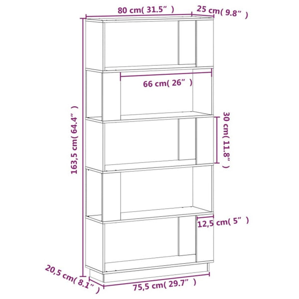 Musta kirjahylly/tilanjakaja 80x25x163,5cm mänty
