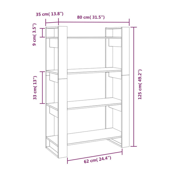 Musta kirjahylly/tilanjakaja 80x35x125cm mänty