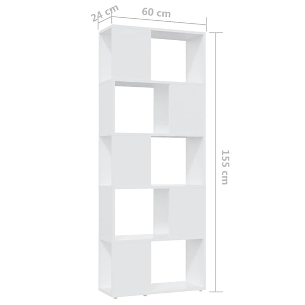 Valkoinen kirjahylly/tilanjakaja 60x24x155cm lastulevy