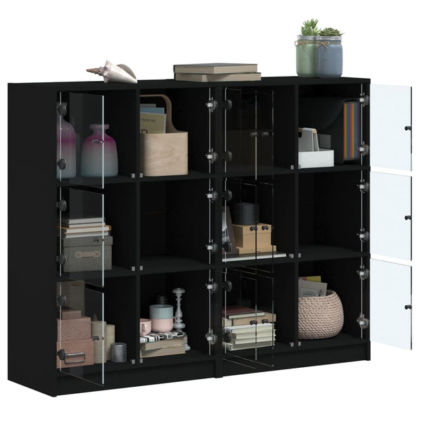 Kirjahylly ovilla musta 136x37x109 cm tekninen puu