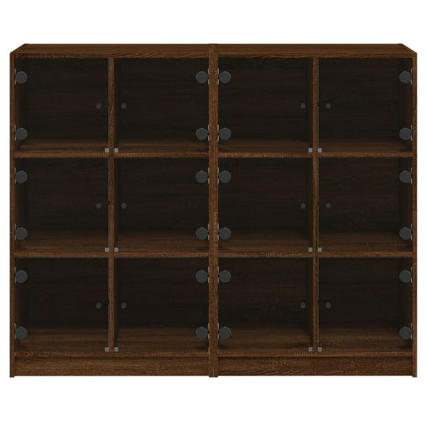- Käytännöllinen muotoilu: Pidä tärkeät tavarasi pölyttöminä piilottamalla ne lasiovien taakse. Lisäksi mustat kahvat helpottavat kirjahyllyn lokeroiden avaamista.
