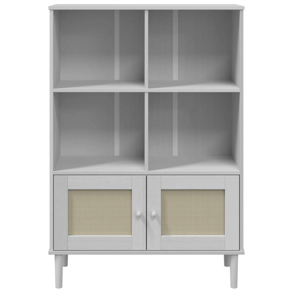 - Rottinkityylinen pinta: Kirjahyllyn oven etuosa on valmistettu käsityönä polyrottingista. Se on kaksisävyinen sekoitus vuosisadan puolivälin modernia ja boho tyyliä, joka lisää kodikkaan mutta tyylikkään kosketuksen tilaasi.