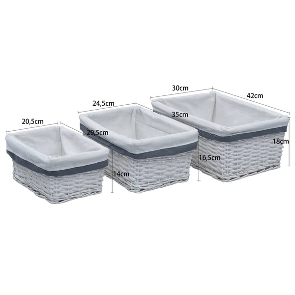 Valkoinen korisarja 3-osainen, sisäkkäin sopivat, paju