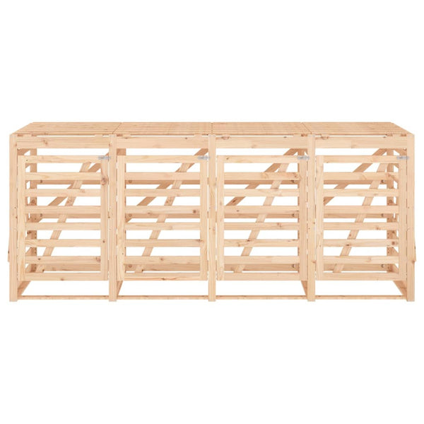 Tämä puinen neljän roska-astian vaja pitää puutarhasi roska-astiat poissa näkyvistä ja luo kauniin ja siistin ympäristön.