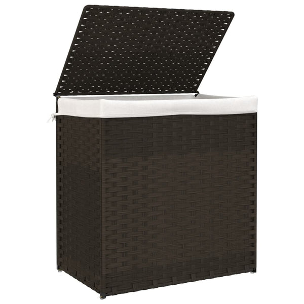 Tummanruskea pyykkikori 53x35x57cm 2 osainen polyrottinki
