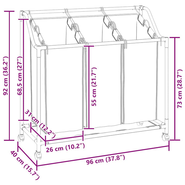 Kuvittele, miten energiaa säästävää ja kätevää on pitää likaiset vaatteesi järjestyksessä, ja kuljettaa ne helposti pesuhuoneeseesi, käyttäjäystävällinen pyykkikorimme tekee sen mahdolliseksi! Tämä pyykkikori järjestää minkä tahansa pesuhuoneen, kodinhoitohuoneen tai komeron, tämä tekee siitä täydellisen vaihtoehdon juuri sinulle. Siinä on kolme täysikokoista lajittelupussia, jotka on helppo irrottaa ja kuljettaa pesukoneeseen teräskantokahvoilla.