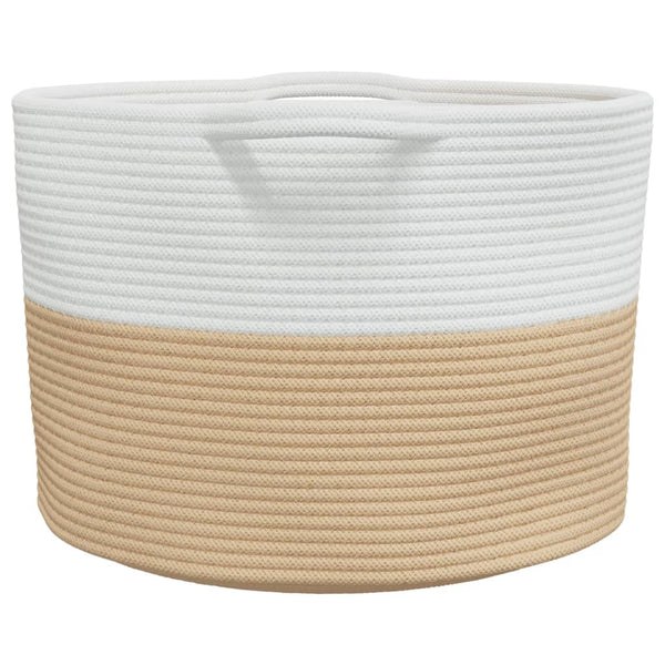 Beige ja valkoinen pyykkikori Ø55x36cm puuvilla