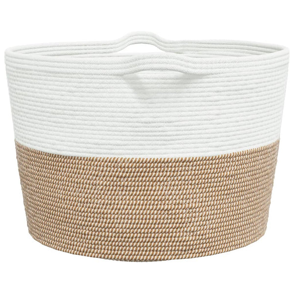 Ruskea ja valkoinen pyykkikori Ø60x36cm puuvilla