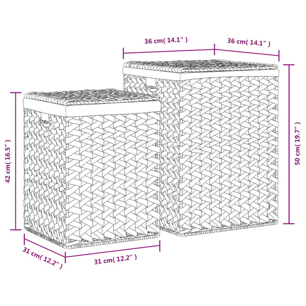 - Kestävä materiaali: Pyykkikorit on valmistettu vesihyasintista ja lujasta metallirungosta, jotka tekevät niistä tukevia ja kestäviä.