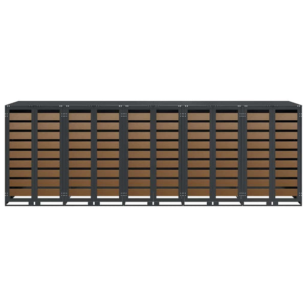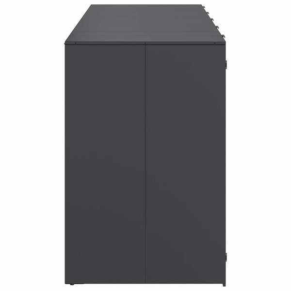 - Tuuletettu rakenne tehokkuuden takaamiseksi: Muotoilussa on tuuletusominaisuuksia, jotka mahdollistavat ilman kierron. Tämä tekee siitä sekä käytännöllisen että elegantin. Ilmankierto säilytysrakenteen sisällä estää epämiellyttäviä hajuja ja varmistaa, että kaikki säilytettävät roskasäiliöt pysyvät tuulettuvina, parantaen hygieniaa ulkotilassasi.