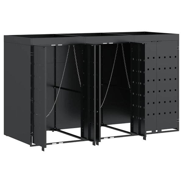 - Jauhemaalattu teräsrakennus Tämä Wheelie Bin -säilytys on tehty kestävästä jauhemaalatusta teräksestä, joka kestää vaihtelevaa säätä. Materiaali estää ruostumista ja tuo vähän huoltotarvetta puutarhaasi. UV-suoja pitää värin kauniina.