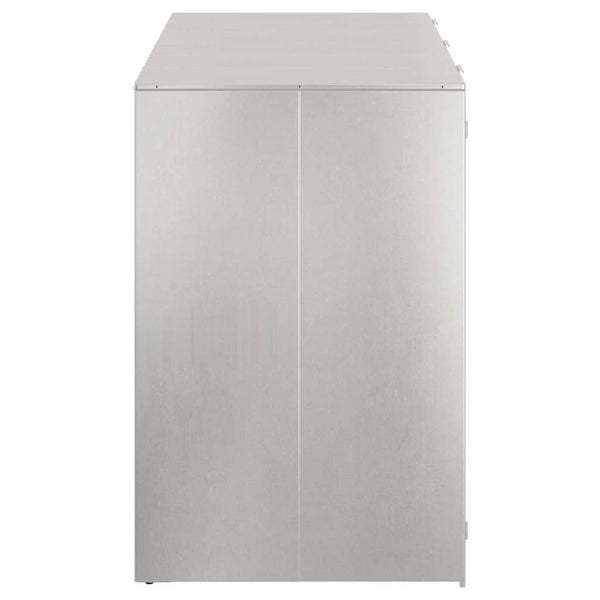 - Tuuletettu rakenne tehokkuuden takaamiseksi: Muotoilussa on tuuletusominaisuuksia, jotka mahdollistavat ilman kierron. Tämä tekee siitä sekä käytännöllisen että elegantin. Ilmankierto säilytysrakenteen sisällä estää epämiellyttäviä hajuja ja varmistaa, että kaikki säilytettävät roskasäiliöt pysyvät tuulettuvina, parantaen hygieniaa ulkotilassasi.