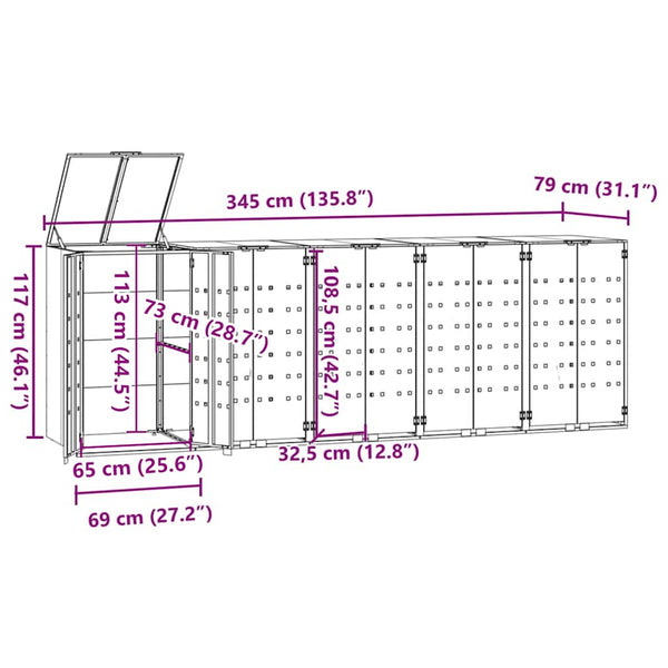 Musta roskalaatikon säilytystila viidelle 345x79x117cm teräs