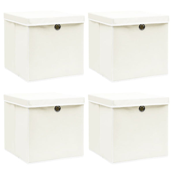Valkoinen säilytyslaatikot kansilla 32x32x32cm 4 kpl kangas