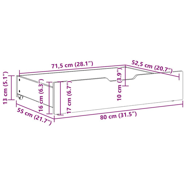 Sängyn alavetolaatikot pyörillä 80x55x16cm 2 kpl, mänty