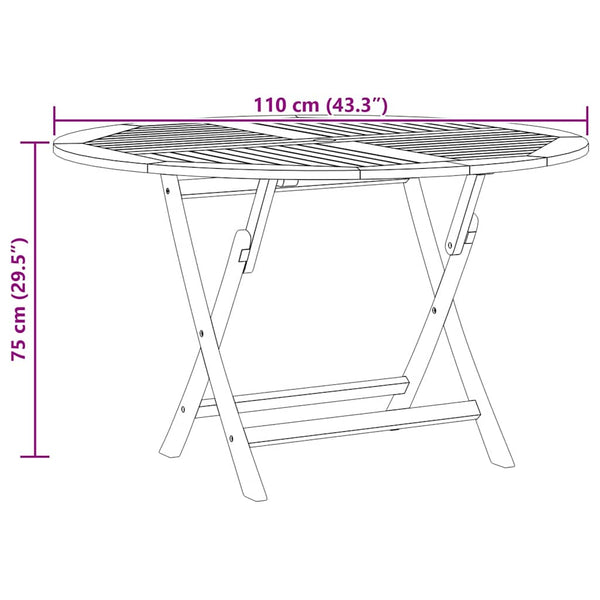 Kokoontaittuva puutarhapöytä Ø 110x75cm tiikki