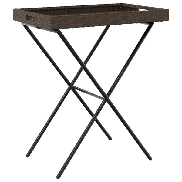 Ruskea kokoontaittuva tarjotinpöytä 65x40x75cm polyrottinki