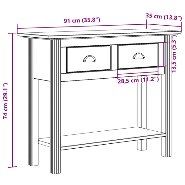 - Runsaasti säilytystilaa: Tässä käytännöllisessä eteispöydässä on kaksi laatikkoa ja alahylly, jotka tarjoavat runsaasti tilaa kirjojen, kasvien, säilytyslaatikoiden, koristeiden ja vastaavien säilyttämiseen.