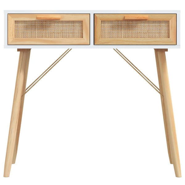 Valkoinen konsolipöytä 80x30x75cm mänty ja rottinki