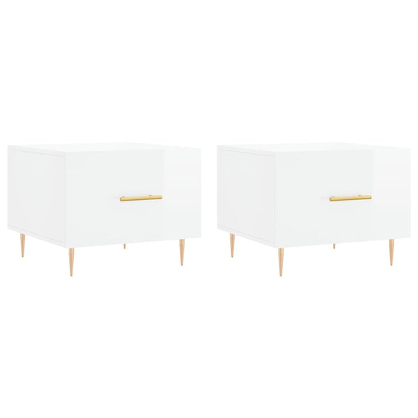 Sohvapöydät 2 kpl korkeakiilto valk. 50x50x40 cm tekninen puu
