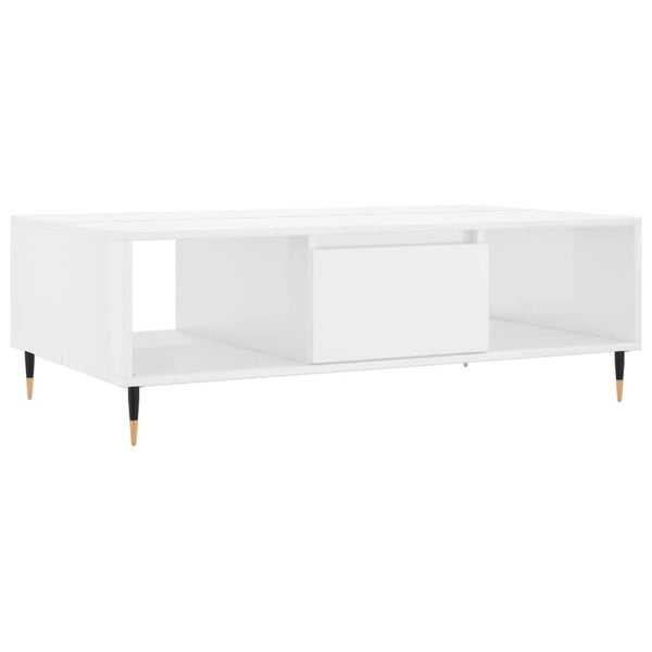 Valkoinen sohvapöytä 104x60x35cm korkeakiilto, puinen
