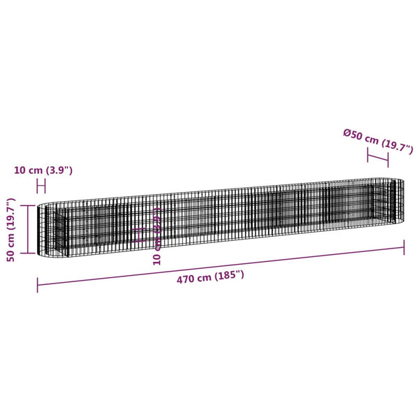 Galvanoitu korotettu kivikori/kukkalaatikko 470x50x50cm rauta