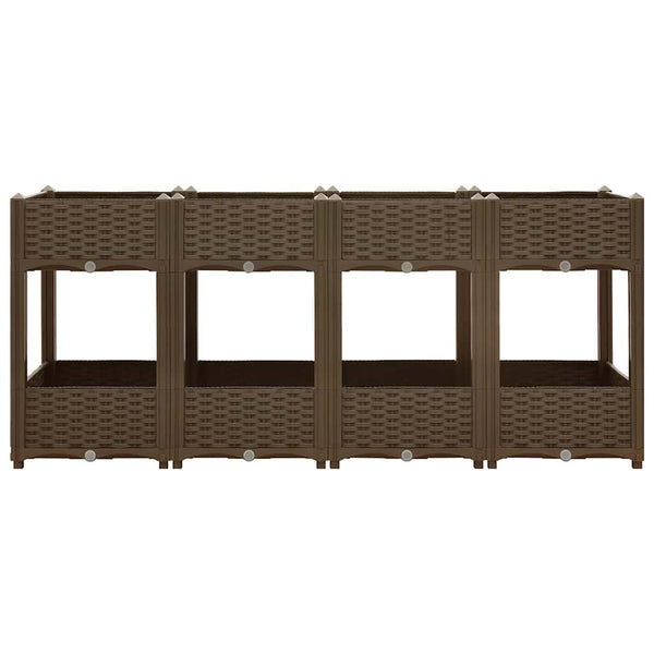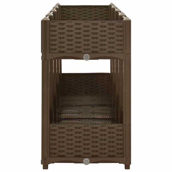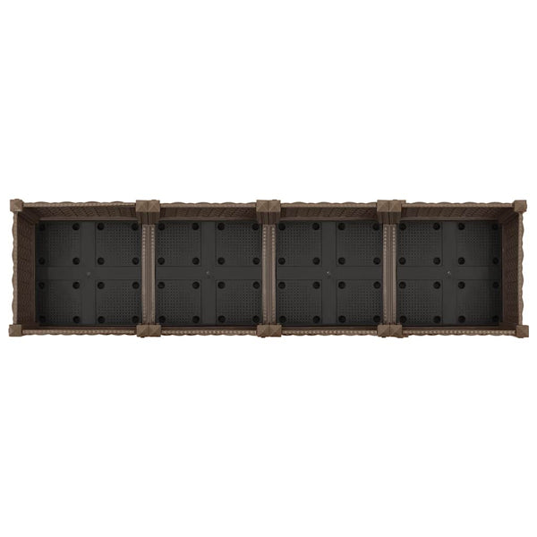 Kukkalaatikko pitää sisällään kaksi hyllyä. Se on valmistettu polypropeenista, joka tekee siitä tukevan, kestävän ja sopivan päivittäiseen ulkokäyttöön. Puutarhan kukkalaatikko on riittävän syvä ja leveä suurelle määrälle multaa ja se tarjoaa runsaasti tilaa kasveille, vihanneksille, yrteille ja kukille. Luo ihana tausta kasveistasi tämän elegantin kukkalaatikon avulla!