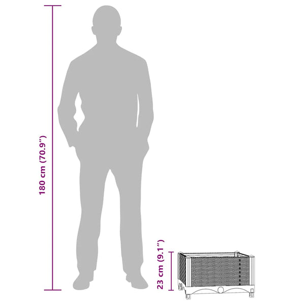 Kukkalaatikko on valmistettu polypropeenista, joka tekee siitä tukevan, kestävän ja sopivan päivittäiseen ulkokäyttöön. Puutarhan kukkalaatikko on riittävän syvä ja leveä suurelle määrälle multaa ja se tarjoaa runsaasti tilaa kasveille, vihanneksille, yrteille ja kukille. Luo ihana tausta kasveistasi tämän elegantin kukkalaatikon avulla!