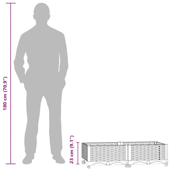 Kukkalaatikko on valmistettu polypropeenista, joka tekee siitä tukevan, kestävän ja sopivan päivittäiseen ulkokäyttöön. Puutarhan kukkalaatikko on riittävän syvä ja leveä suurelle määrälle multaa ja se tarjoaa runsaasti tilaa kasveille, vihanneksille, yrteille ja kukille. Luo ihana tausta kasveistasi tämän elegantin kukkalaatikon avulla!