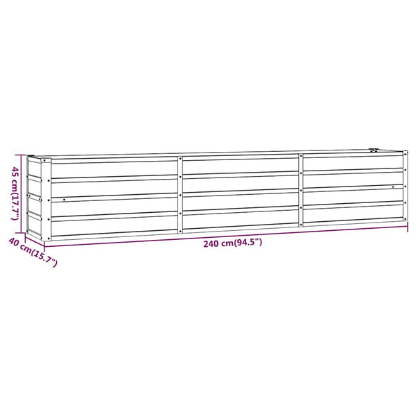 Ruoste korotettu kukkalaatikko 240x40x45cm corten teräs